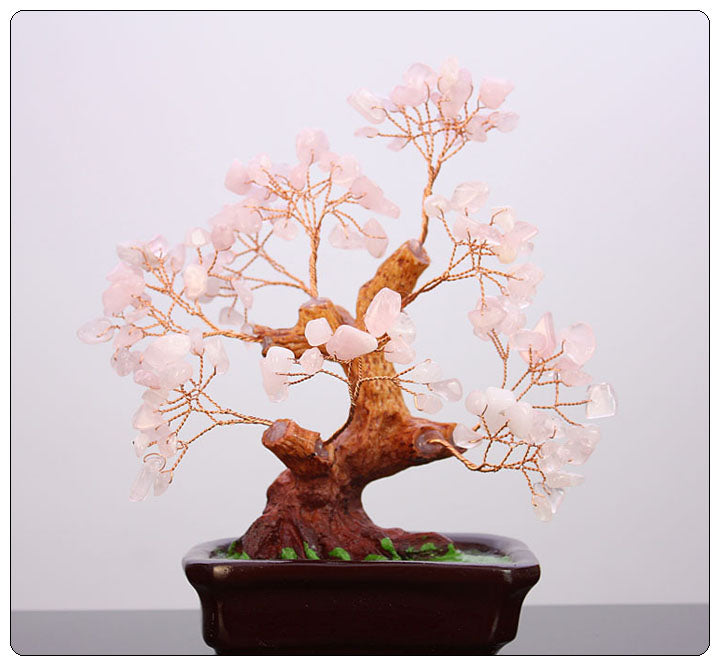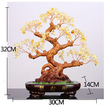 Bonsai, which translates to "potted plant", originated in China and Japan, is the art of aesthetic miniaturization of trees by growing them in containers. This gemstone money tree bonsai is very realistic and carefree. A nice decorative plant for home. It also symbolize to increase the luck of wealth, success, and good energy.