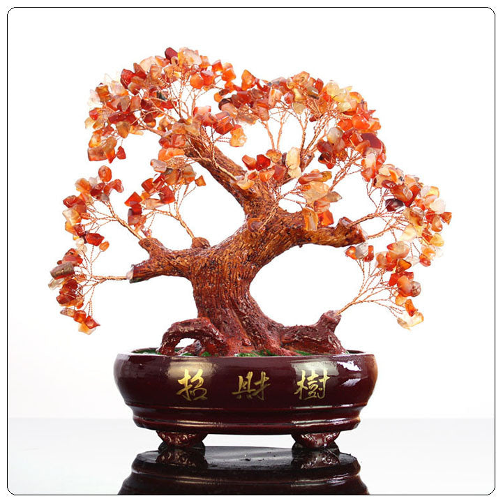 Bonsai, which translates to "potted plant", originated in China and Japan, is the art of aesthetic miniaturization of trees by growing them in containers. This gemstone money tree bonsai is very realistic and carefree. A nice decorative plant for home. It also symbolize to increase the luck of wealth, success, and good energy.